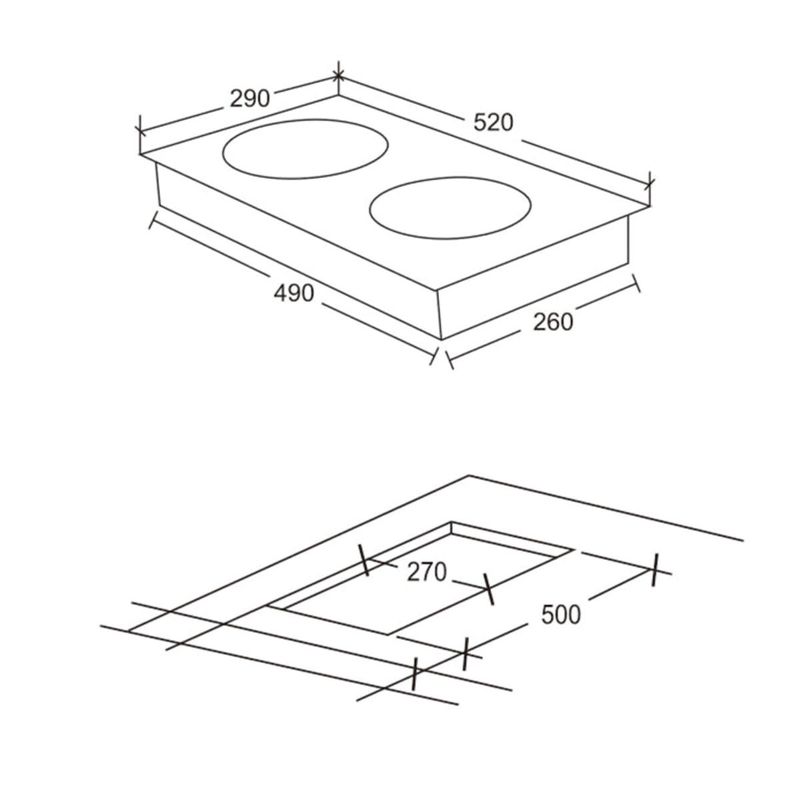 • Control táctil • Temporizador digital • 9 niveles de potencia para cada quemador • Bloqueo de seguridad para niños • 1 placa ultra rápida 180mm de 1800W y 1 placa doble circuito 140mm de 1200W