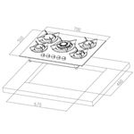 • 1 quemador triple corona: 3.3KW, 1 quemador súper rápido: 2.5kw, 2 quemadores semi rápidos 1.75kw, 1 quemador auxiliar: 1kw.