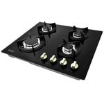 Cocina De Empotre Negra De Vidrio 60 Cms. - 4 Quemadores, Sistema De Seguridad Corta Gas, Quemador Triple Corona