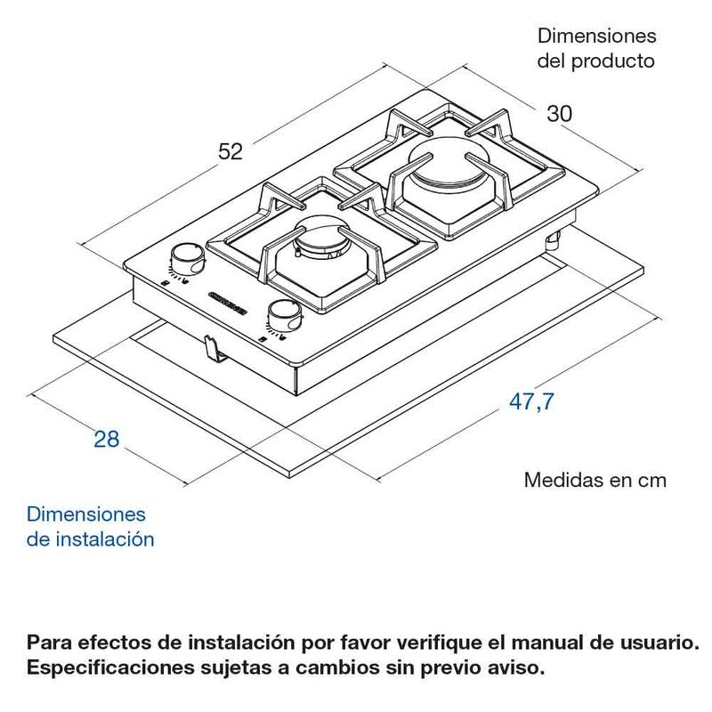 Dimensiones de empotre: ancho 28 x profundidad 47.7 cm