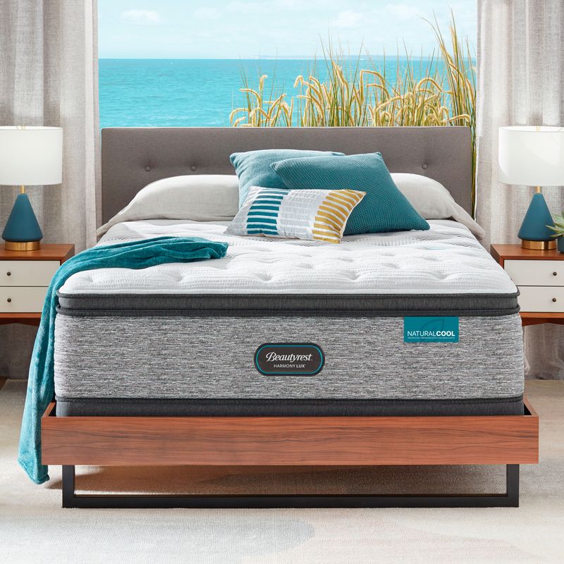 HogarColchones y SommiersColchonesColchón Simmons 2.5 Plazas Beautyrest Harmony Firmeza Medio Firme Pillow Top Color Blanco Con Contorno Gris Claro