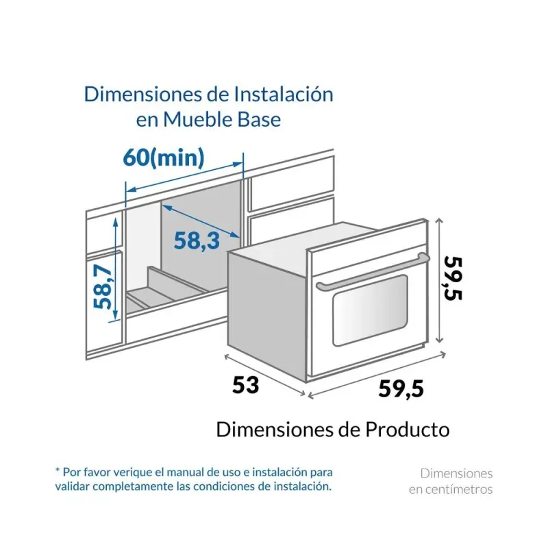 Dimensiones: alto 59.5 x ancho 59.5 x profundidad 54 cm
